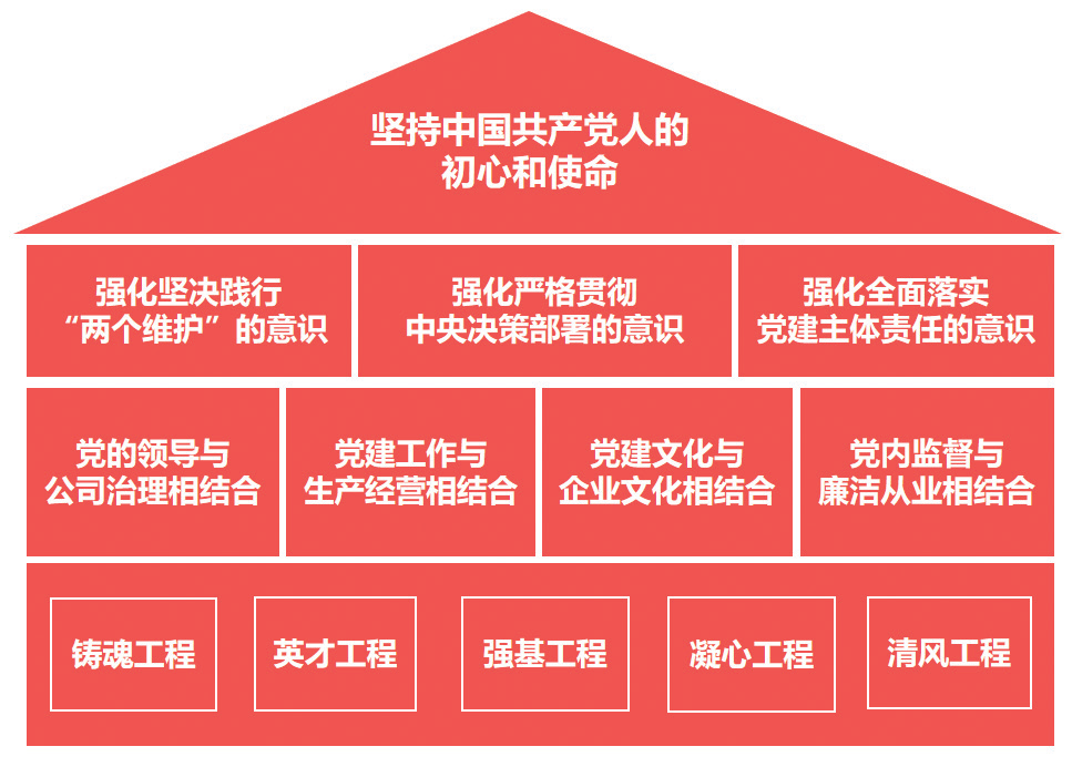 (三)构建党建工作体系,是指导企业提升党建工作整体实效的重要举措。全国国企党建会以来,集团党委通过加强党建工作体系建设,从集团层面加强顶层设计,推动党建工作理念创新、机制创新、方式创新,从操作层面推动党的领导与公司治理紧密衔接、基层党组织规范运行、基层党建标准化建设等工作,确保了党建工作不断迈上新台阶。